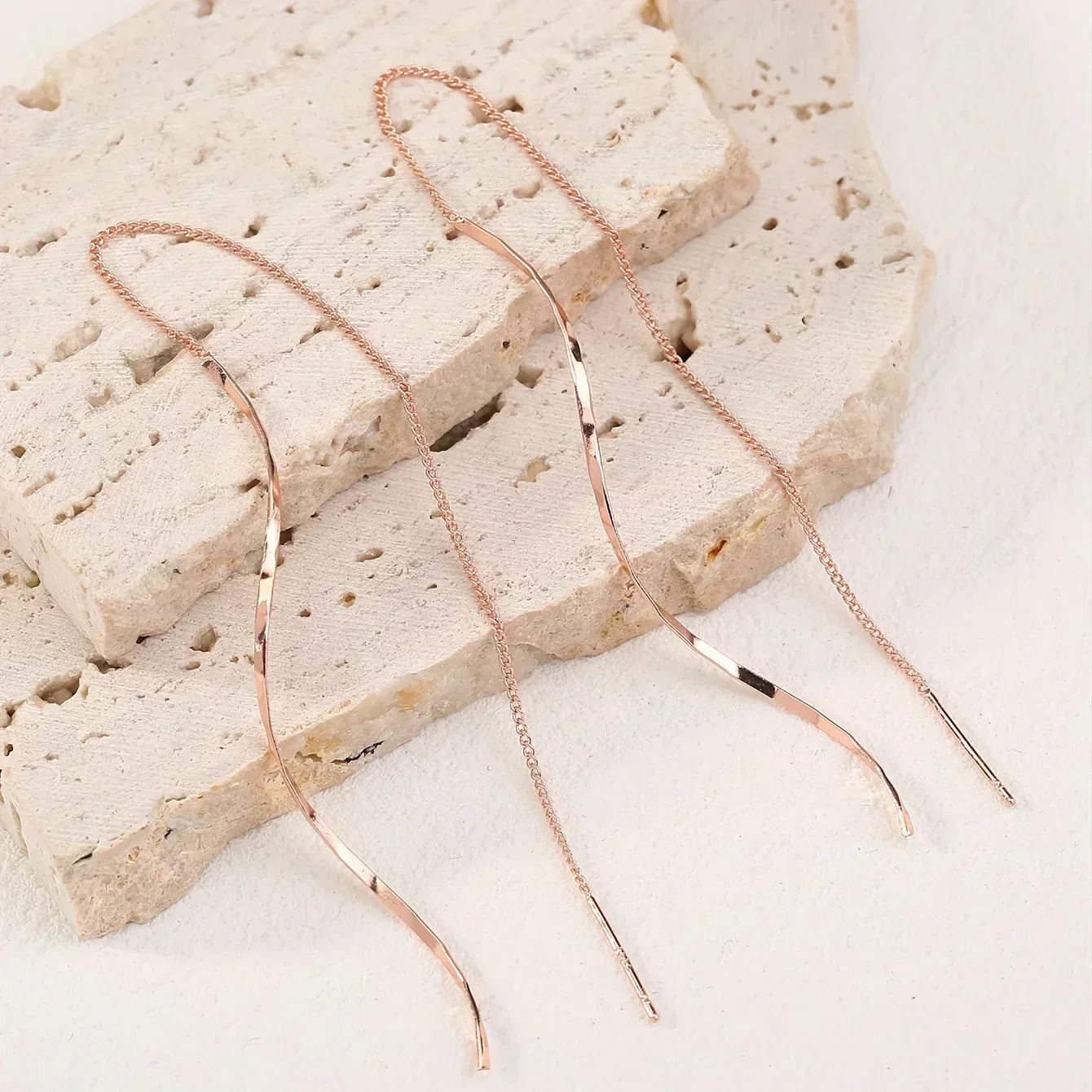 Complete your look with the Eline Flair Long Earrings with Wave Design! These modern and refined earrings accentuate your facial features and give any outfit a unique twist. With their wavy design and long chains, they are the perfect statement pieces for both everyday wear and special occasions.